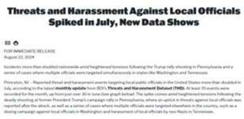 https://bridgingdivides.princeton.edu/updates/2024/threats-and-harassment-against-local-officials-spiked-july-new-data-shows